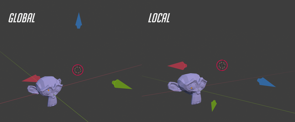 There is a switch between local and global coordinates. Through Transformation Orientation.